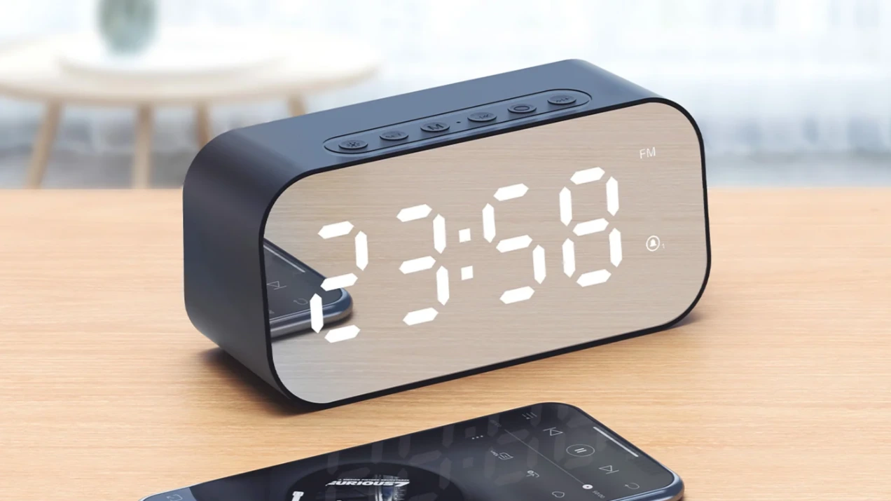 - 5-in-1 Functionality: Combines a dual alarm clock, FM radio, Bluetooth speaker, thermometer, and microphone for hands-free calls.